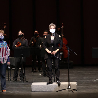 En nombre del Gobernador Alfredo Del Mazo, la Secretaria de Cultura y Deporte, Marcela González Salas, agradeció a los asistentes, a la Directora y a la OFM, además de reconocer la tarea de los profesionales de la salud del Estado de México, del país y del mundo.